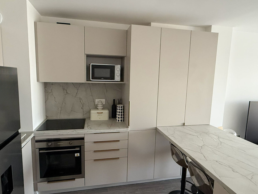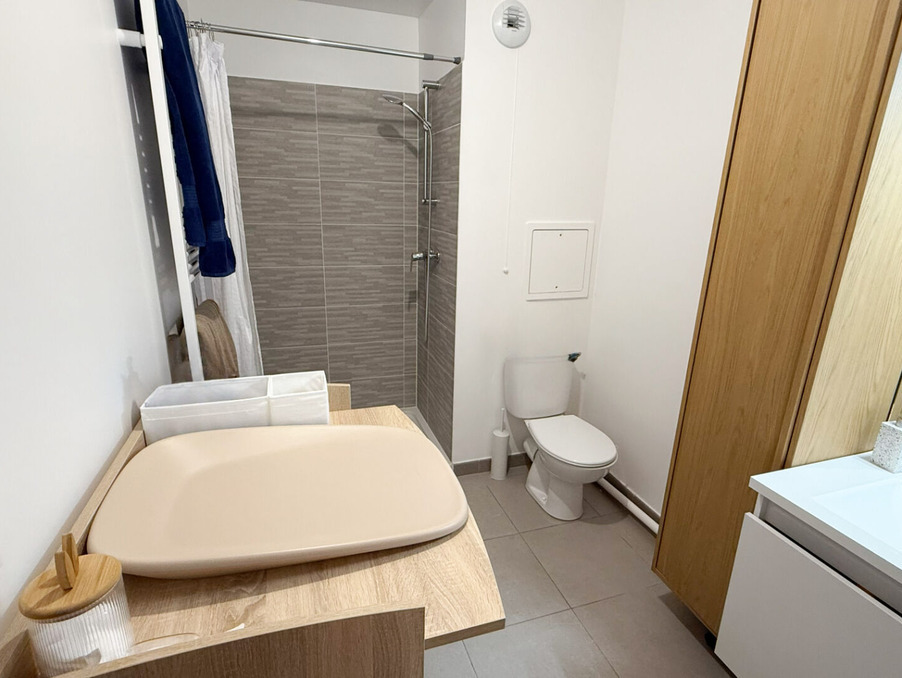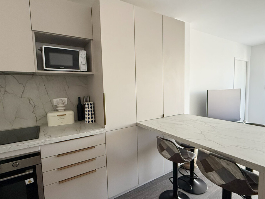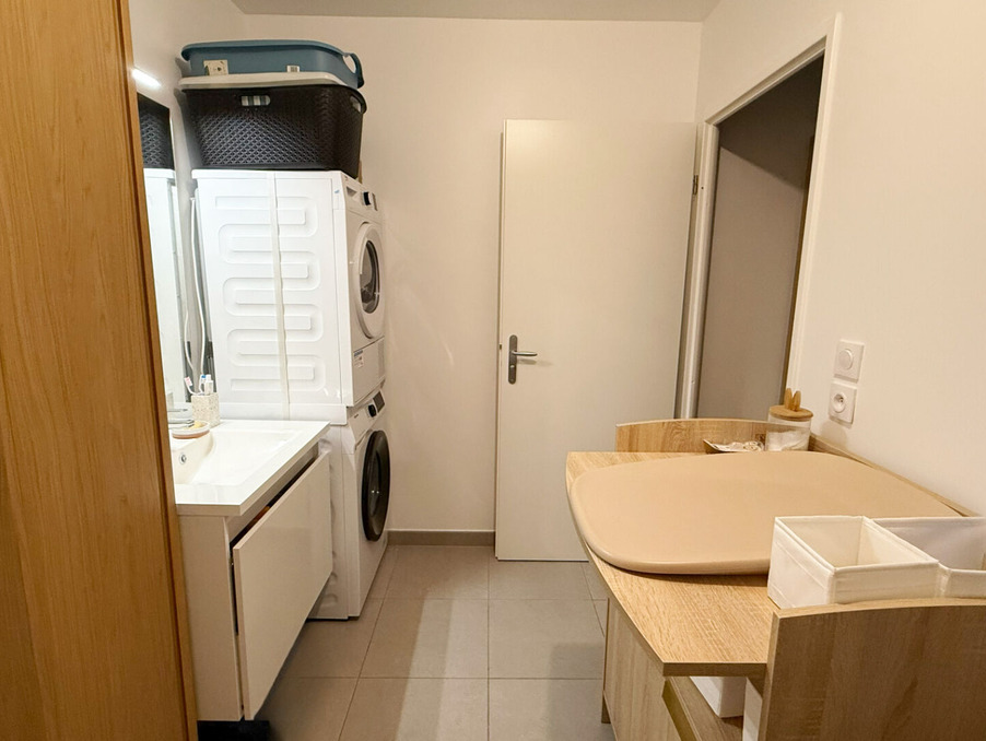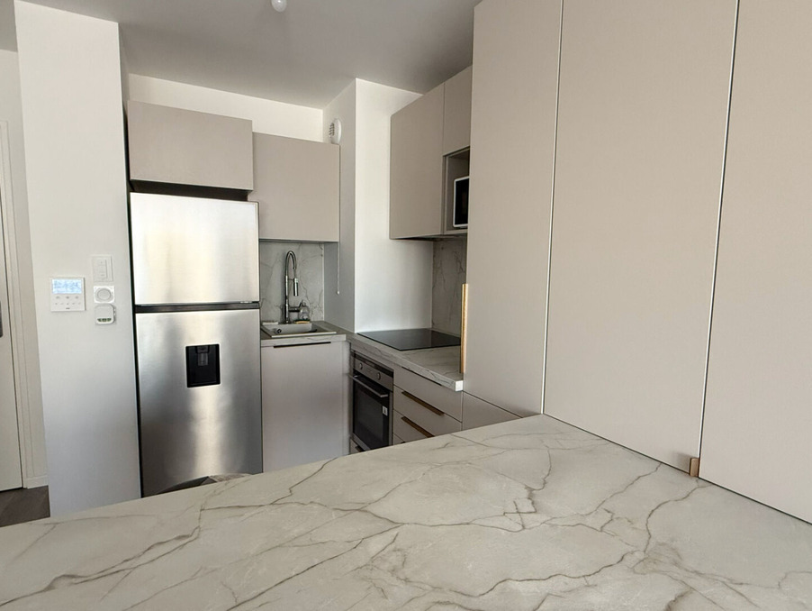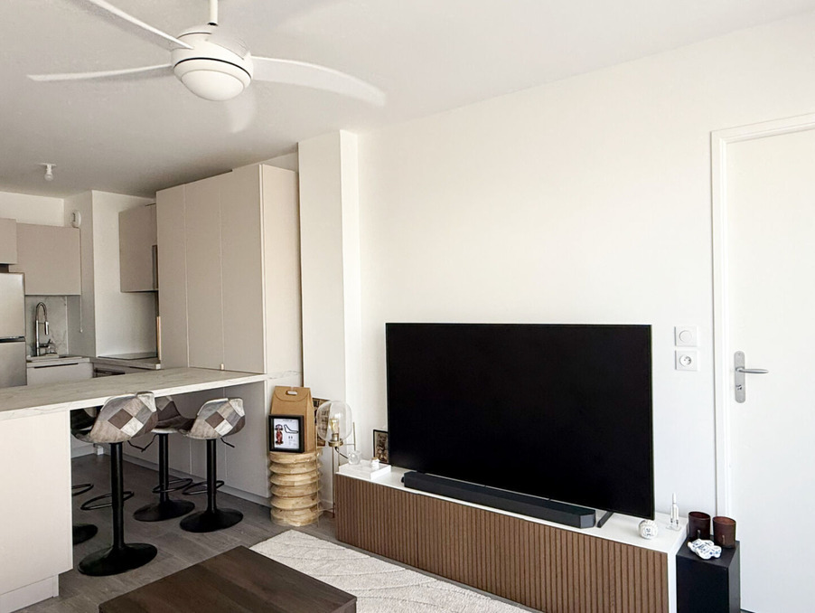 Situé au premier étage avec ascenseur, cet appartement lumineux et chaleureux se compose d'une cuisine ouverte entièrement aménagée et équipée, avec de nombreux rangements et un îlot permettant un agréable espace dinatoire. Le séjour, confortable, offre un accès à un grand balcon de 5 m². La chambre spacieuse est équipée d'un grand dressing. Vous trouverez également une salle d'eau moderne avec WC, parfaitement agencée. Le bien dispose d'une place de stationnement privative au sein de la résidence. Le tout à la décoration soignée et parfaitement entretenu.