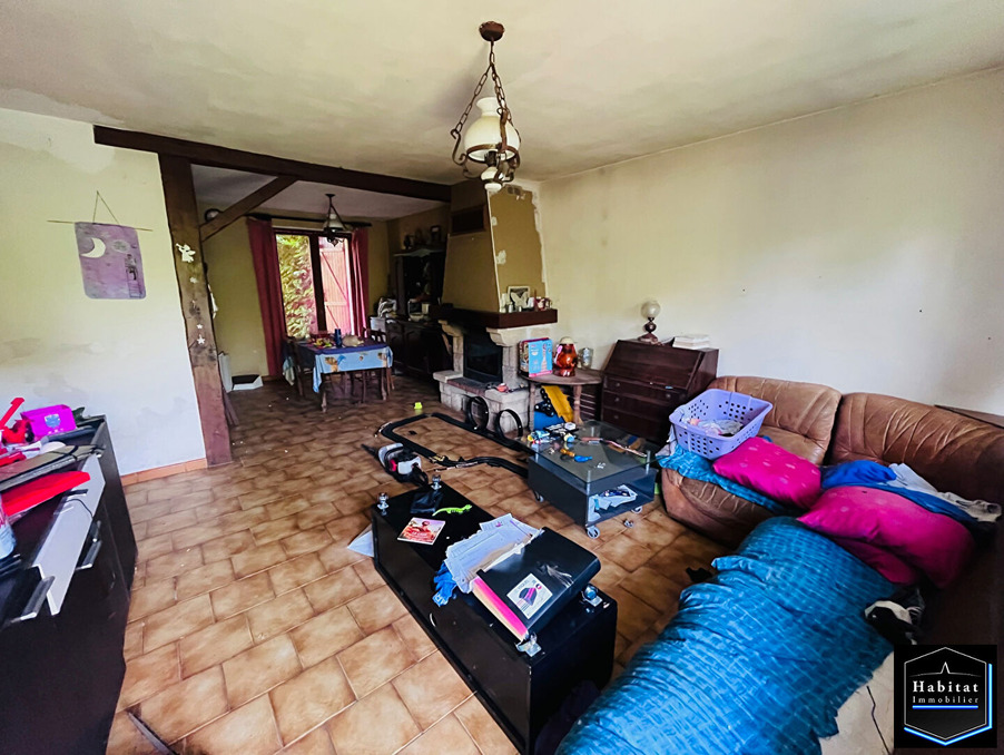 Entrée sur un séjour chaleureux avec cheminée, parfait pour les soirées en famille, Cuisine à aménager selon vos envies, WC, Salle d'eau, 3 chambres.