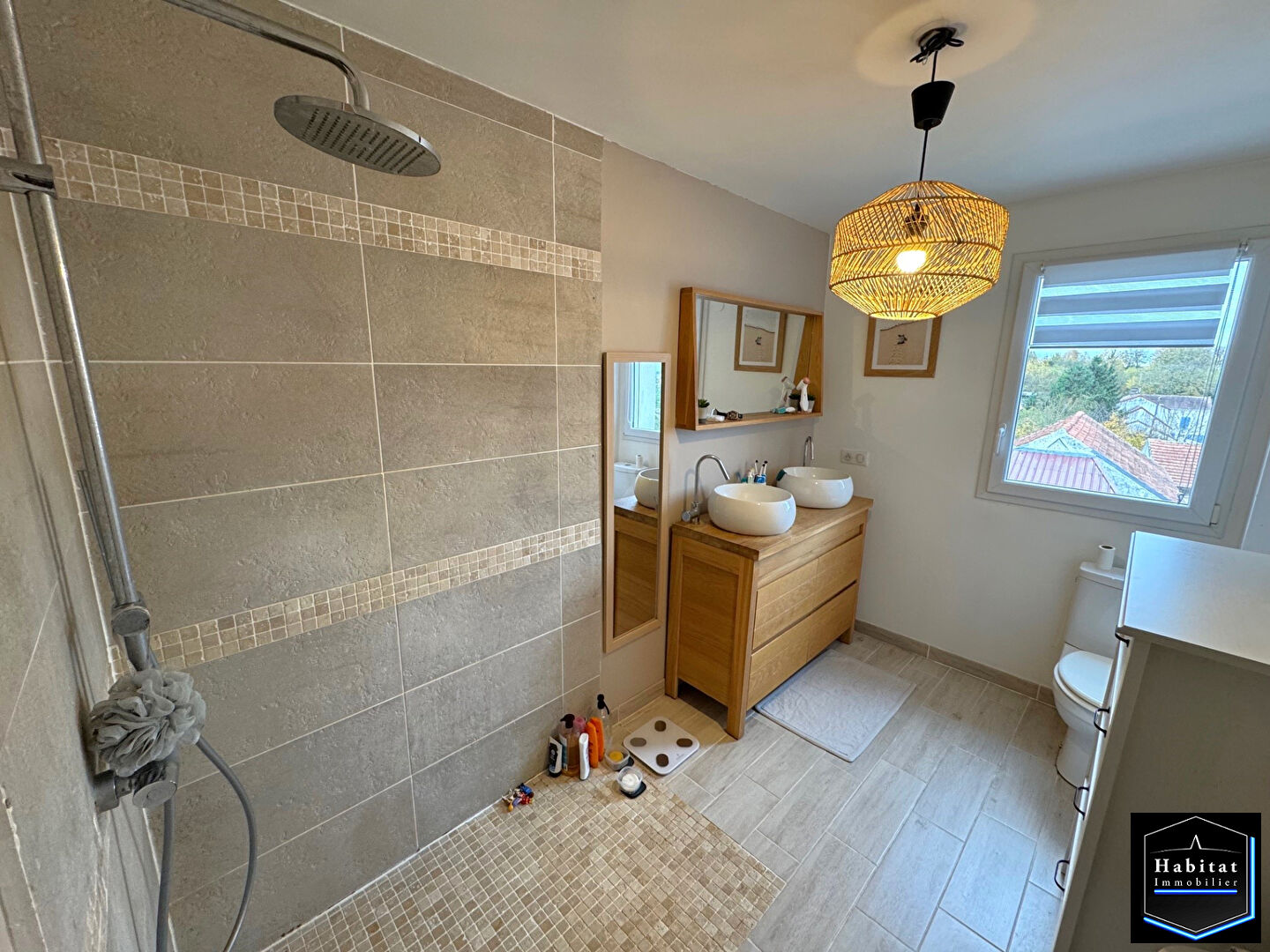 BREGY - L'équipe HABITAT IMMOBILIER NANTEUIL vous propose, dans un quartier calme, à proximité des écoles, ce pavillon STANDING CONSTRUCTION de 2017 élevé sur sous-sol total et offrant : une entrée avec rangement, séjour double avec cuisine ouverte équipée et poêle à granulés, wc séparé. A l'étage, palier, 3 chambres, salle d'eau avec wc et douche à l'italienne. Sous-sol composé d'une buanderie, coin atelier et garage. L'ensemble sur un terrain de 368 m² avec terrasse exposée SUD avec une vue sur les champs.