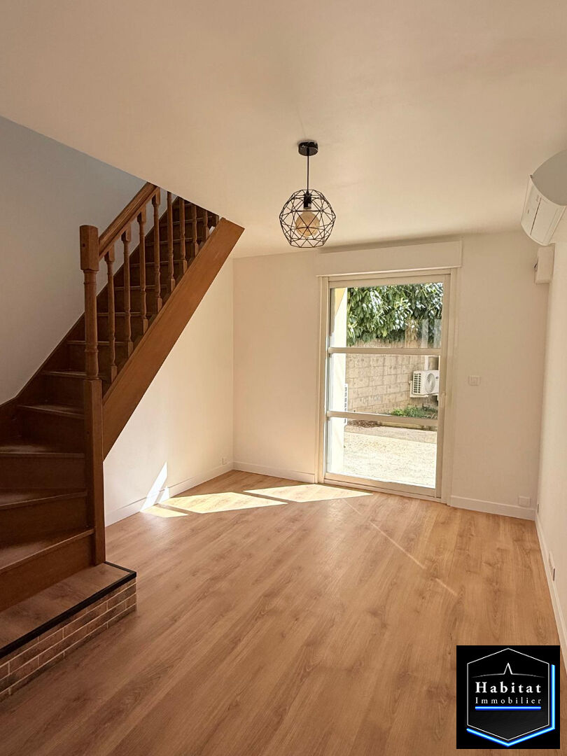 Au rez-de-chaussée se trouvent une entrée avec wc, une cuisine ouverte aménagée équipée avec espace salle à manger et un salon avec escalier donnant accès à l'étage.